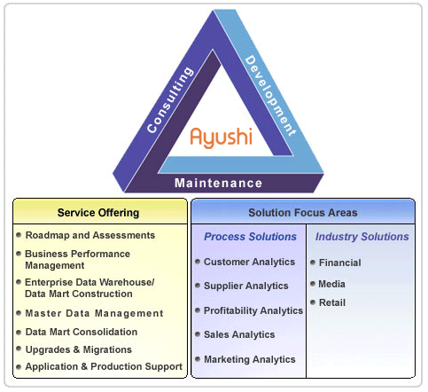 Ayushi's DW is the Data Management Division of Ayushi specializing in Data Management, Data Warehousing and Business Intelligence. The information you capture about your customers, vendors, employees, and other critical business processes has enormous value when leveraged efficiently.